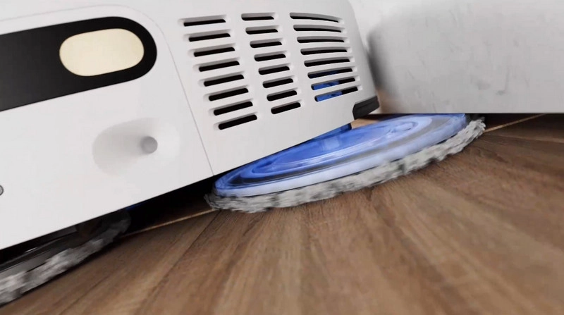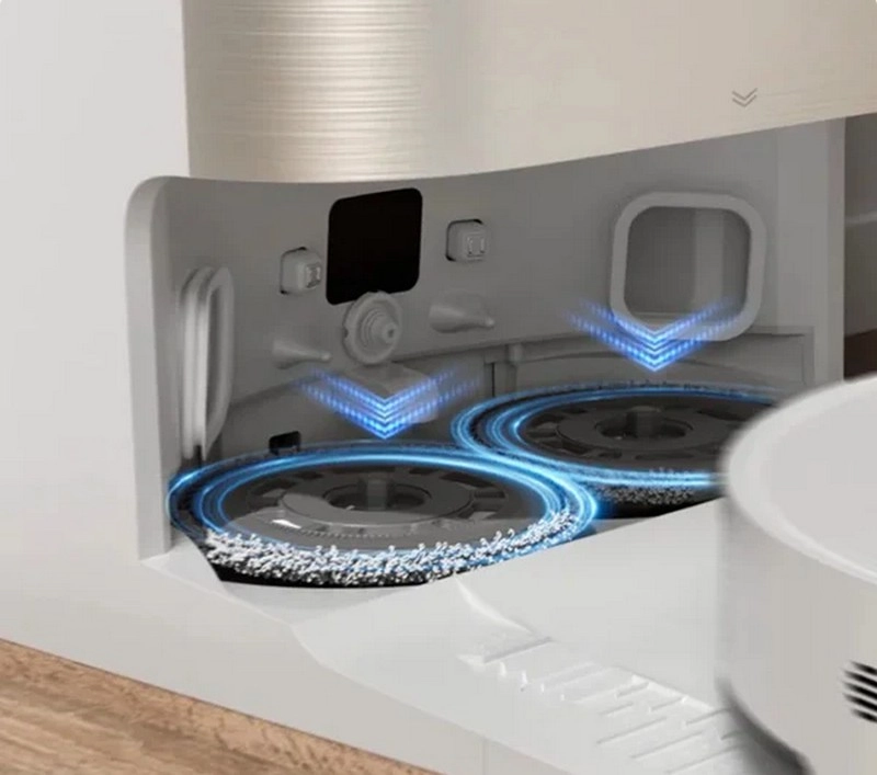 Умный робот умеет оставлять швабру на базовой станции для сухой уборки.