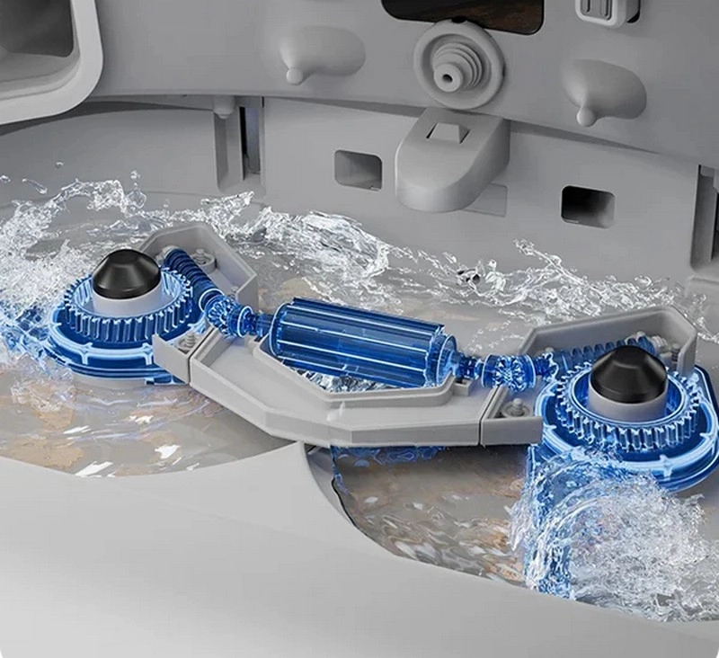 Базовая станция не только стирает швабру, но и самостоятельно очищает поддон для ее стирки.