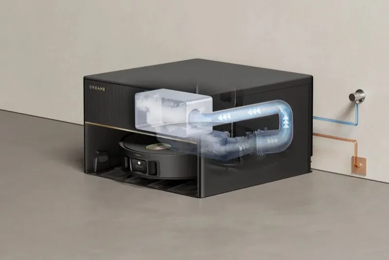 PowerDock в Dreame X50 Master берёт на себя все этапы обслуживания: автоматически заправляет и сливает воду, промывает элементы и заряжает устройство, позволяя полностью сосредоточиться на чистоте дома без лишних хлопот и ручного вмешательства.