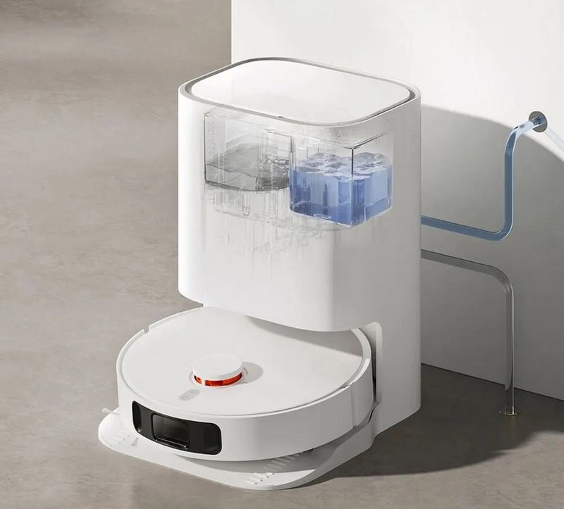 Робот-пылесос Mijia Self Cleaning Robot Vacuum Mop 2 Pro поставляется в комплекте со станцией самоочистки. Внутри станции 3 контейнера — для чистой воды, грязной и моющего средства. При каждом возвращении на базу робот стирает салфетки водой с моющим средством. Когда уборка завершена салфетки сушатся горячим воздухом.