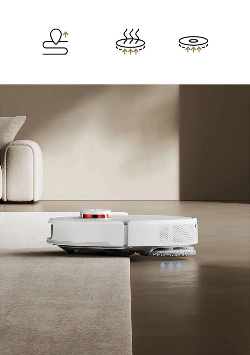 Мощность всасывания пылесоса может достигать 7000 Па. Он тщательно соберет весь мусор на своем пути, включая щели в полу и глубину коврового ворса. Система камер помогает пылесосу находить мусор и не позволит пропустить ни одной пылинки.
