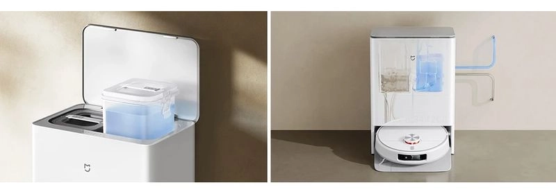 Док-станция Mijia Sweeping Robot M30 Pro оснащена ножами из нержавеющей стали, которые срезают намотанные волосы и предотвращают их повторное наматывание. Большого контейнера для мусора хватает на 75 дней работы пылесоса, а подогрев воды до 60 градусов эффективнее очищает швабру и помогает пылесосу лучше справляться с присохшими загрязнениями.