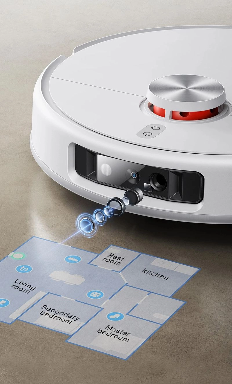 Для повышения качества уборки и легкой навигации Mijia Sweeping Robot M30 Pro оснащен лазерной навигацией и встроенной видеокамерой. Лидар позволяет пылесосу ориентироваться в пространстве при любом уровне освещения, а широкоугольная камера с искусственным интеллектом распознает объекты и помечает их на карте.