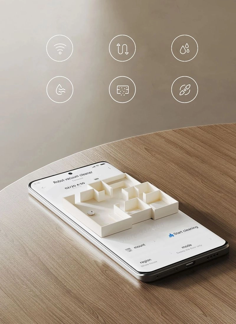 Управляйте уборкой через удобное приложение, которое позволяет планировать уборку по расписанию, ограничивать доступ к определенным зонам, выбирать как часто мыть швабру, мощность всасывания, режим уборки и много другое.