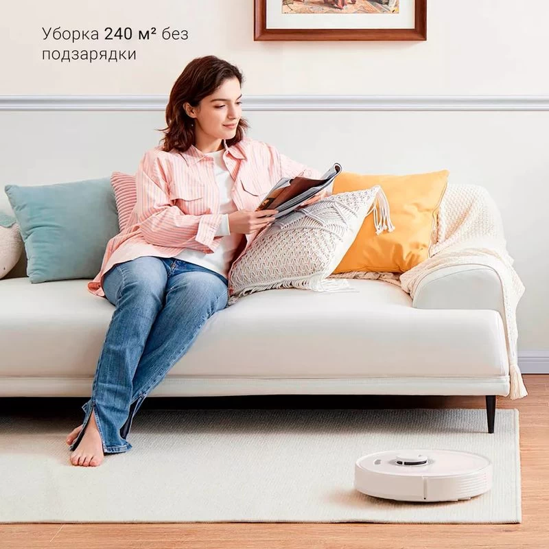 Встроенный аккумулятор имеет емкость 5200 мАч. Он работает до 3 часов без подзарядки и за это время может убрать до 240 кв.м.