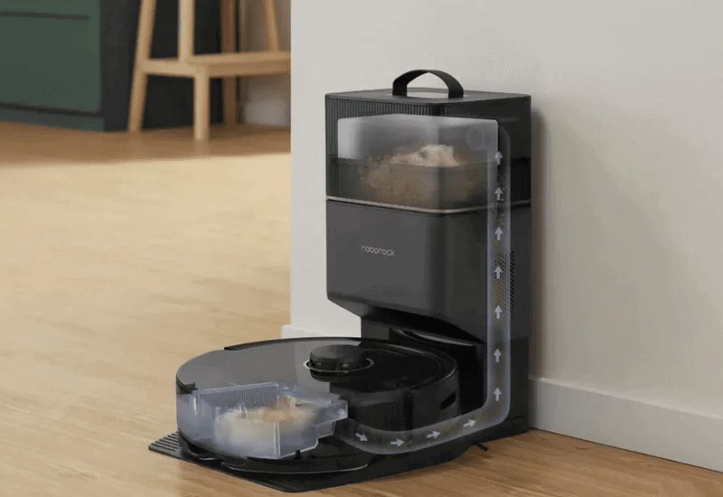 В комплекте с пылесосом поставляется станция самоочистки, которая быстро и эффективно очищает пылесборник робота после уборки.