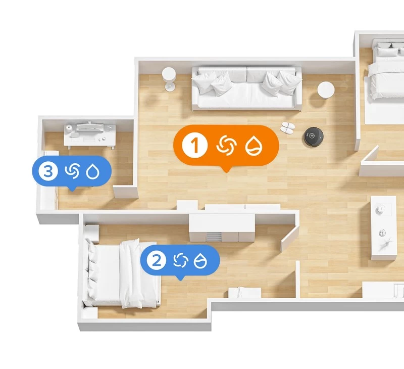 Удобное приложение позволяет вам устанавливать порядок уборки комнат и выставлять индивидуальные параметры уборки для каждой комнаты.