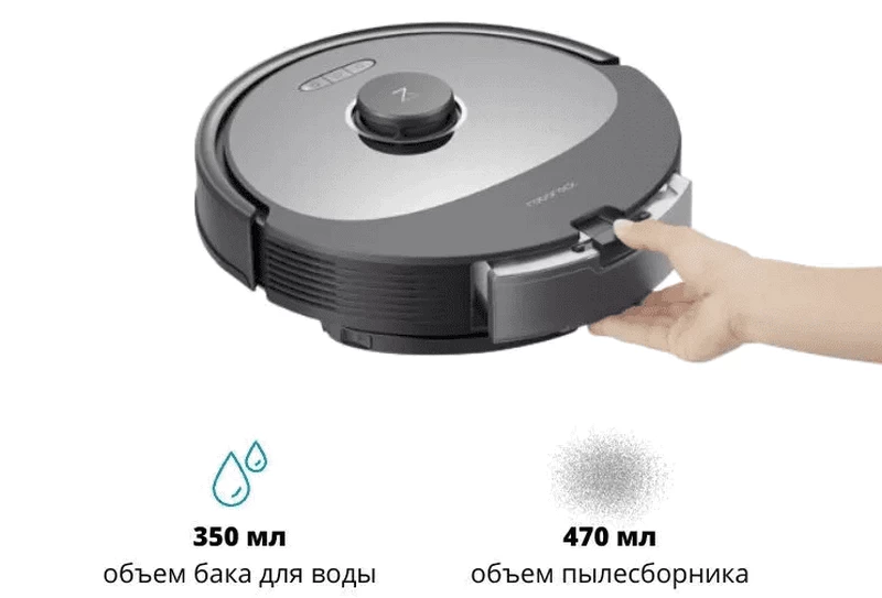 Емкость аккумулятора 5200 мАч — ее хватает на 240 минут уборки или 300 кв.метров площади.