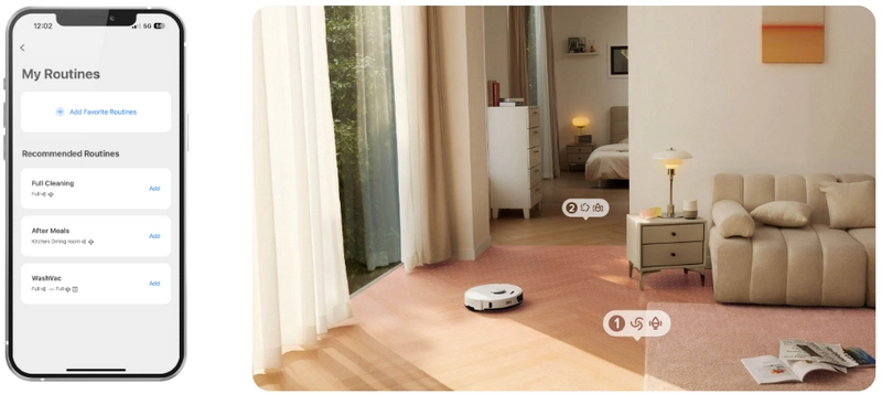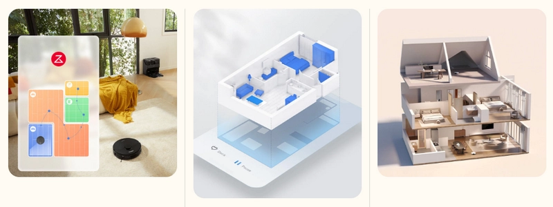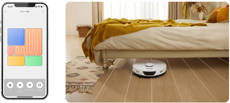 PreciSense LIDAR осуществляет объемное сканирование пространства и отмечает каждый объект дома на карте в приложении. Используя виртуальную карту дома, робот планирует последовательность уборки, а вы можете выбирать конкретные области очистки и создавать запретные зоны. Приложение поддерживает до 4 поэтажных карт дома.