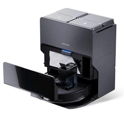 Автоматически очищает пылесборник робота, стирает швабру горячей водой, распознает остаточные загрязнения, умеет добавлять моющее средство, самостоятельно менять воду, заправлять пылесос водой и сушить швабру горячим воздухом. Для зарядки пылесоса станция умеет выбирать время с низким тарифом в регионах с двухтарифными счетчиками. Эта версия поставляется с двумя резервуарами для чистой и грязной воды, а также сменным мешком для пыли.