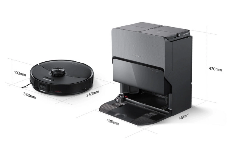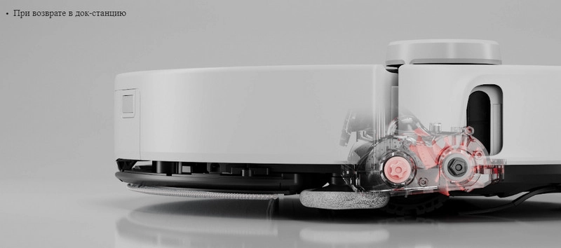 Автоматически очищает пылесборник робота, стирает швабру горячей водой, распознает остаточные загрязнения, умеет добавлять моющее средство, самостоятельно менять воду, заправлять пылесос водой и сушить швабру горячим воздухом. Для зарядки пылесоса станция умеет выбирать время с низким тарифом в регионах с двухтарифными счетчиками.