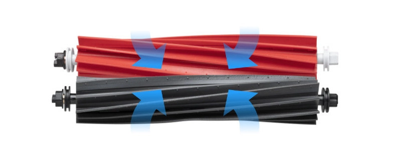 Roborock S8 чистит ковры еще лучше, благодаря двойной резиновой роликовой щетке. Волосы и шерсть не наматываются на ролики, а отправляются сразу в контейнер для мусора.