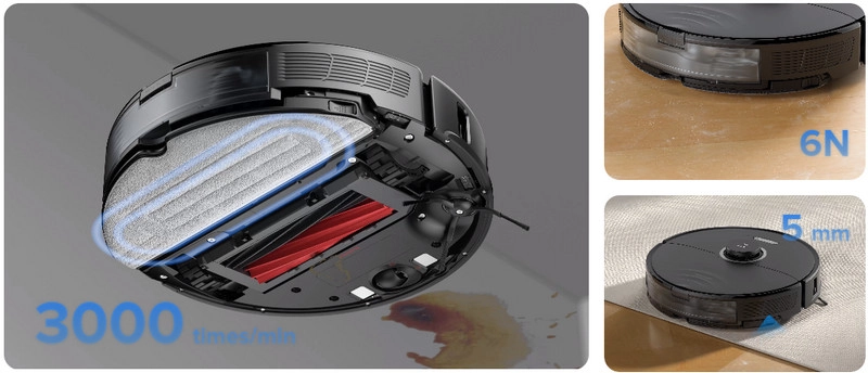 Робот-пылесос оснащен системой HyperForce, которая способна собирать мусор с силой всасывания 6000 Па.