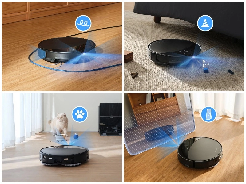 Робот-пылесос оснащен первой в отрасли системой двойного твердотельного LiDAR и 3D-навигацией на базе технологии Time-of-Flight. В отличие от обычных 2D-сканеров, ToF обеспечивает точное объемное сканирование пространства с детализацией, сравнимой с распознаванием лиц. Устройство в 21 раз чаще обновляет данные, легко ориентируется в сложных зонах — от подвесных шкафов до узких ниш — и устраняет препятствия, мешающие качественной уборке.