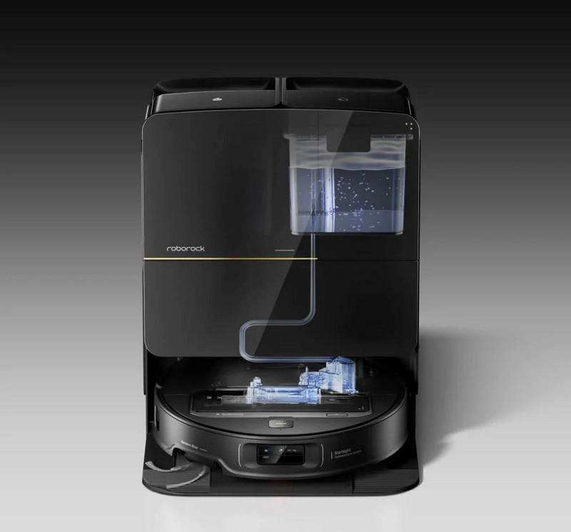 Базовая станция умеет заправлять робот-пылесос горячей водой для влажной уборки.