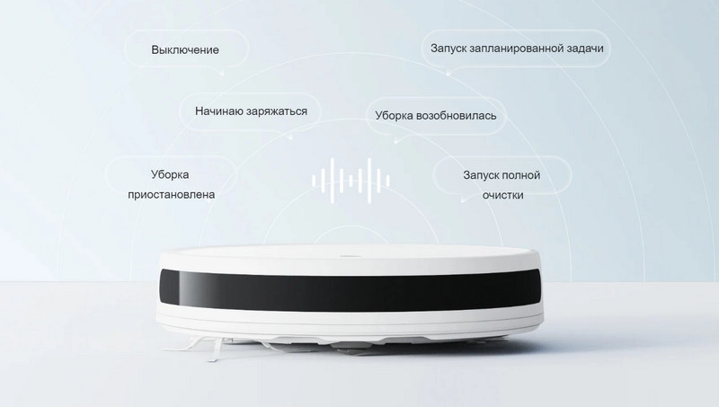Голосовые оповещения на русском языке сообщают о начале и завершении уборки, начале зарядки, разряде аккумулятора, возвращении на док-станцию и дают полезные советы по очистке пылесоса.