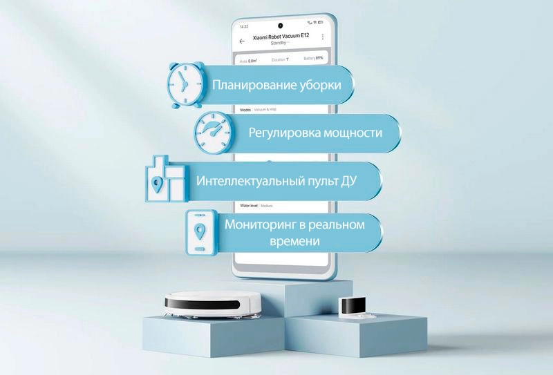 Приложение Mi Home интуитивно понятно и удобно в управлении. Оно позволяет выбрать режим и мощность уборки, запланировать уборку по расписанию, следить за ее прогрессом, а также контролировать состояние расходников.