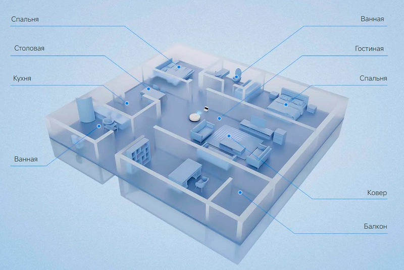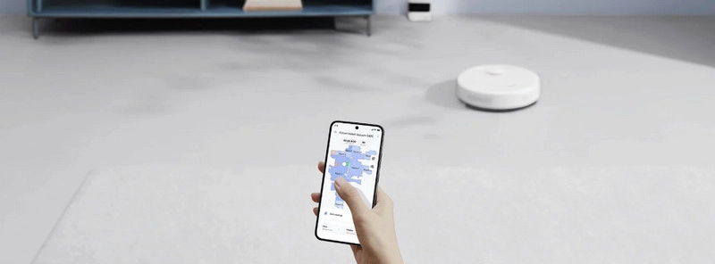 После сканирования помещения робот создает индивидуальный план уборки с возможностью настройки под конкретные нужды: вы можете указать зоны для особо тщательной очистки, установить виртуальные стены для ограничения доступа или запланировать выборочную уборку определенных участков, включая специальный режим для ковровых покрытий.