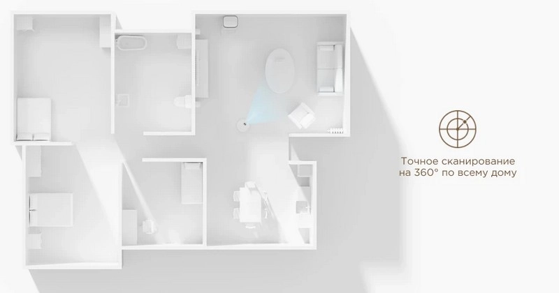 Лазерный дальномер позволяет пылесосу точно сканировать окружающее пространство и сохранять планировку дома в виде 3D карт в приложении Mi Home.