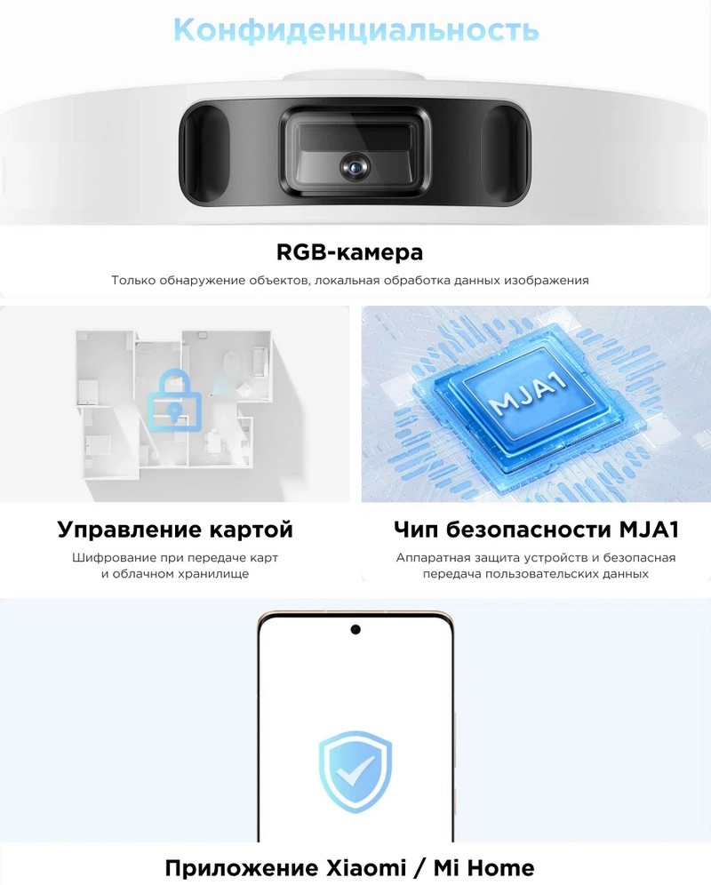 Xiaomi X10 Plus прошел сертификацию стандарта кибербезопасности и защиты частной жизни TÜV Rheinland. RGB-камера используется только для распознавания объектов и вся обработка изображений производится локально, чип безопасности MJA1 обеспечивает аппаратную защиту данных пользователей при передаче данных и карт.