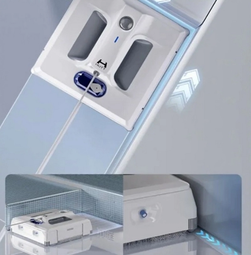Робот присасывается к стеклу и оттирает грязь с давлением до 3300 Па.