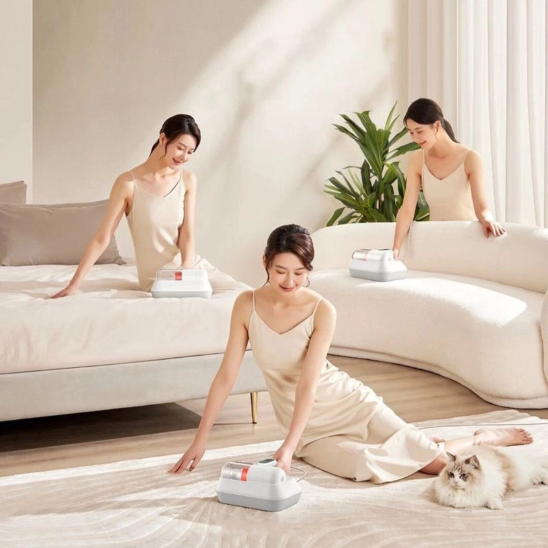 Ручной портативный пылесос Mijia Mite Removal Device Pro (B402CN) — создан для очистки текстиля и мягкой мебели. Маленький и мощный пылесос высасывает из волокон ткани пылевых клещей, чешуйки кожи, перхоть, пыль и другие загрязнения. Ультрафиолетовая лампа дополнительно стерилизует ткани уничтожая бактерии, микробы и грибки.