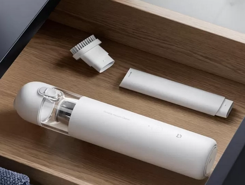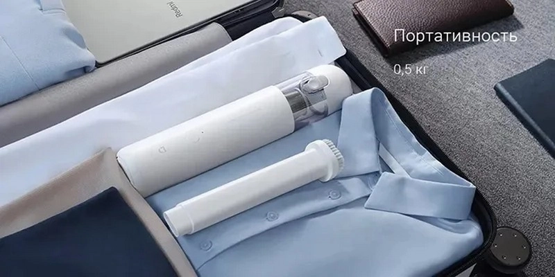 Xiaomi Mijia Handy Vacuum Cleaner можно взять с собой в дорогу. Малый вес и размер позволяют упаковать пылесос с чемодан с одеждой..