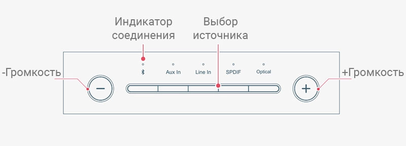 Для "старта" саундбара, необходимо: подключиться к источнику звука, подключить устройство к источнику питания и нажать кнопку включения. При "готовности" саундбара - загорается соответствующий световой индикатор.