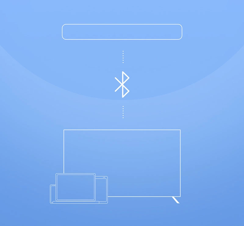 Саундбар оснащен Bluetooth модулем для беспроводного соединения с различными девайсами.