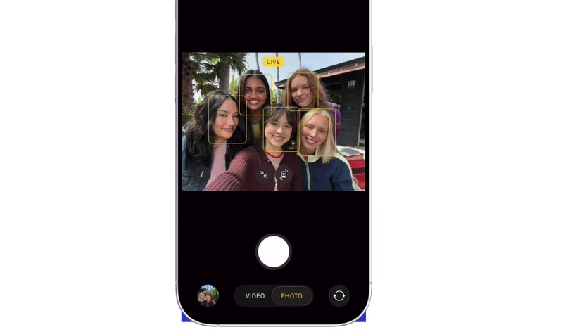 Фронтальный датчик квадратной формы позволяет масштабировать и поворачивать кадр прямо во время съёмки. Для групповых фото он расширяет угол и перестраивает композицию так, чтобы никто не остался за кадром.