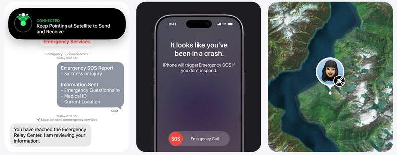 Emergency SOS через спутник отправляет данные спасателям при отсутствии связи, а Crash Detection автоматически реагирует на ДТП.