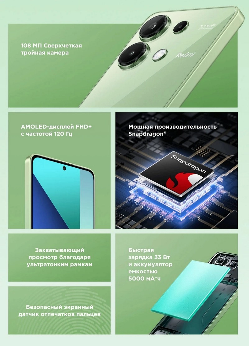 Смартфон Redmi Note 13 — с тройной камерой разрешением 108 Мп, AMOLED дисплеем с частотой обновления 120 Гц и подэкранным сканером отпечатков пальцев стал достойным продолжателем легендарной серии Redmi Note.