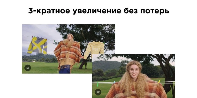 Алгоритмы масштабирования изображения поддерживают трехкратный зум, который не уступает классическому оптическому зуму.