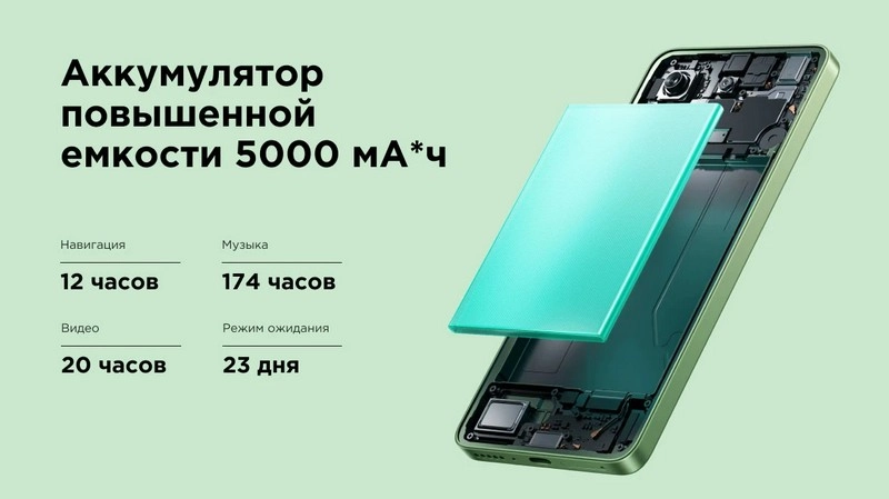 Аккумулятора емкостью 5000 мАч хватит на 174 часа прослушивания музыки или 12 часов работы навигатора.