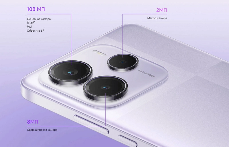 Основная камера | 108 Мп + 8 Мп + 2 Мп (108 Мп, Оптическая стабилизация изображения (OIS), 0,64 мкм, 9 в 1 1,92 мкм, f/1,7. Размер сенсора 1/1,67 дюйма) | |