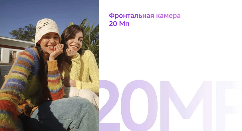 Фронтальная камера с разрешением 20 Мп умеет распознавать количество людей в кадре и делать групповые снимки.