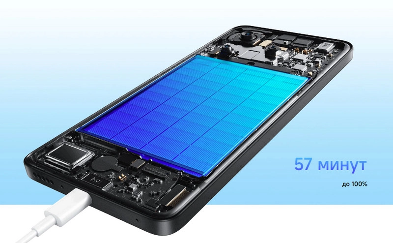Батарея с увеличенной до 5110 мАч емкостью работает 1,28 дня. А быстрая зарядка мощностью 45 Вт заряжает смартфон 100% за 57 минут.