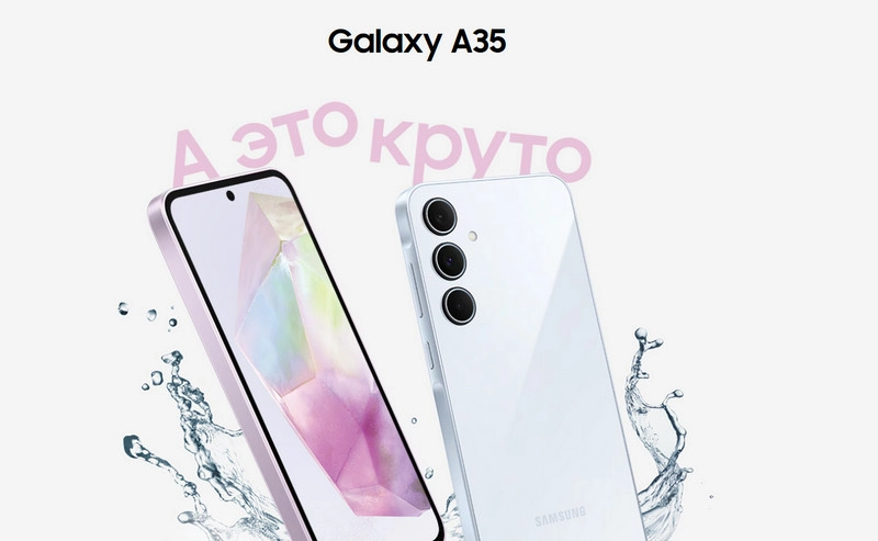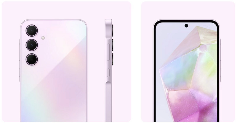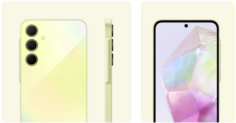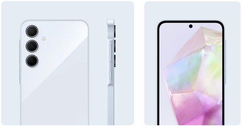 Строгие прямые грани, задняя панель из стекла и нежная палитра — все это Galaxy A35.