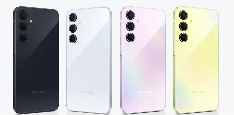 В коллекции Galaxy A35 представлено четыре стильных цвета: желтый, темно-синий, голубой и лавандовый.