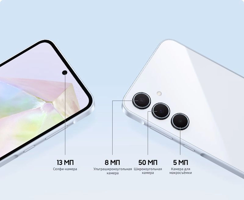 Смартфон Samsung Galaxy A35 — это изящный дизайн, яркие ночные снимки, отличный экран с надежной защитой и мощный процессор с большим объемом памяти.