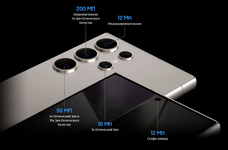 Основная камера с разрешением 200 МП и широкоугольным объективом с 2-кратным оптическим зумом обеспечивает невероятную детализацию снимков. Ультраширокоугольный модуль на 12 МП позволяет захватывать больше пространства, а 50 МП камера с 5-кратным оптическим и 10-кратным качественным зумом идеальна для съемки удаленных объектов. Дополнительный 10 МП модуль с 3-кратным оптическим зумом добавляет гибкости в создании кадров. Фронтальная 12 МП селфи-камера гарантирует четкие и яркие автопортреты, завершая профессиональный набор для съемки в любых условиях.
