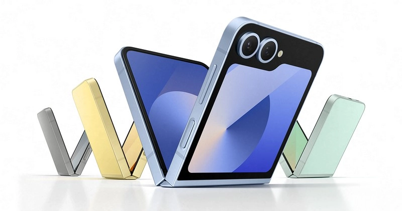 В линейке Galaxy Z Flip6 представлено четыре ярких цвета: голубой, желтый, мятный и серый.