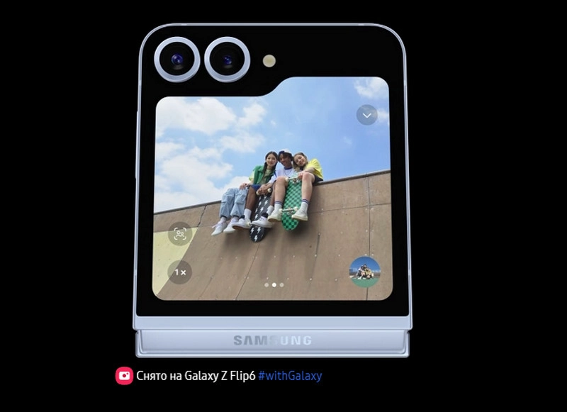 Flex камера в Galaxy Z Flip делает съемку еще удобнее. С функцией автозума вы можете легко приближать или отдалять объекты, а Flex экран позволяет видеть превью кадра перед съемкой. Это идеальное решение для создания селфи без помощи рук — просто настройте композицию и сделайте идеальный кадр с любого ракурса.