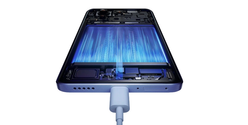 Аккумулятор емкостью 5000 мАч заряжается за 42 минуты с помощью комплектной зарядки мощностью 67 Вт. Полностью заряженного аккумулятора хватает на 16 часов воспроизведения видео, до 5 часов записи видео в формате 1080p или 100 часов воспроизведения музыки.