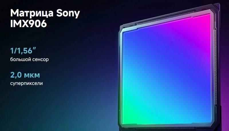 Большой сенсор размером 1/1,56" с поддержкой расширенного динамического диапазона.