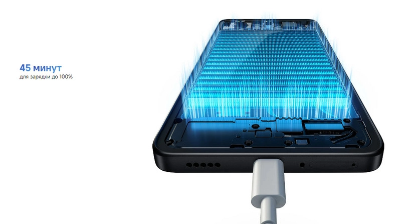 Смартфон поддерживает быструю зарядку мощностью 67 Вт, которая заряжает аккумулятор до 100% за 45 минут.
