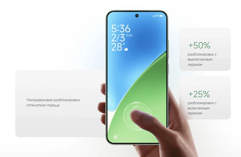 | Расположение сканера отпечатка пальца | Ультразвуковой датчик отпечатков пальцев на экране | |