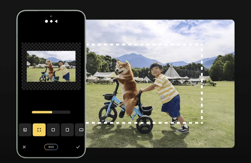 Новая функция с искусственным интеллектом позволяет увеличивать изображения с сохранением качества. Выбирайте стандартные пропорции, задавайте свои или доверьтесь умному алгоритму - ИИ автоматически достроит недостающие детали для естественного результата.
