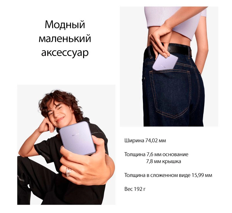 Xiaomi Mix Flip имеет небольшой вес 192 г, а в сложенном виде легко помещается в небольшой карман или сумочку.