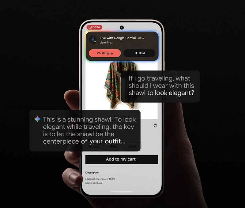 Общайтесь с Gemini в живых диалогах, делясь камерой или экраном в Gemini Live, чтобы получать советы по тому, что видите. Наложение Gemini открывает быстрый доступ поверх любых приложений, а генерация изображений помогает визуализировать идеи в пару касаний. Связанные приложения позволяют извлекать данные и выполнять действия, в том числе в сервисах Xiaomi, не переключаясь между экранами.